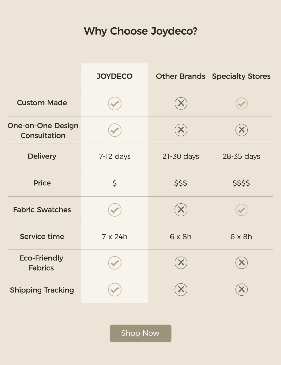 Redefine your interior with Joydeco. We'll help you select the perfect curtains and shades to achieve a beautiful balance of privacy, lighting, and...