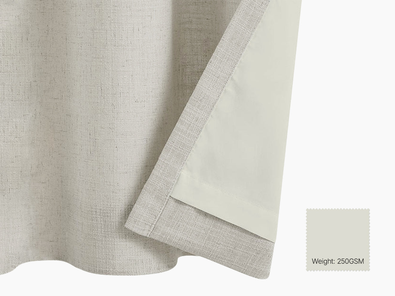 Drape + White Lining = 70-90% Light-blocking*The final ratio also depended on the blackout property of the original curtain fabric.