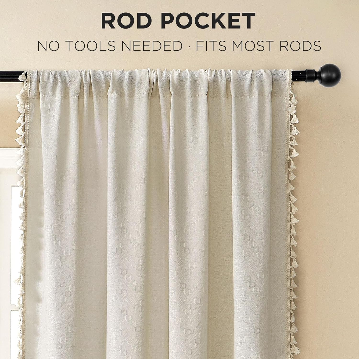 Joydeco Beige Boho Curtains 84 Inch Length 2 Panels, Super Soft Bohemian Farmhouse Curtains with Tassels, Semi Sheer Light Filtering Drapes for Bedroom Living Room (Rod Pocket, 52Wx84L)