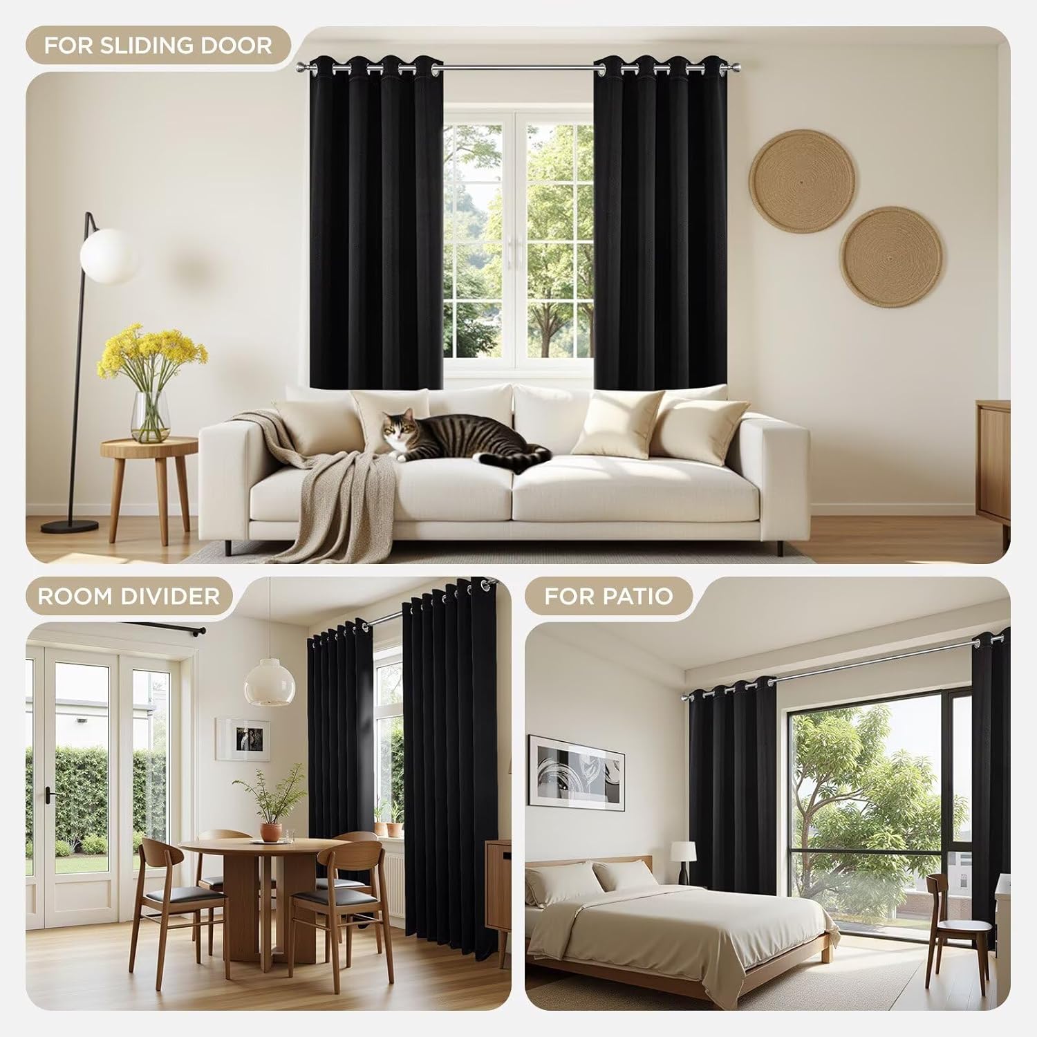 Joydeco Blackout Curtains 72 Inch Length 2 Panels Set, Thermal Insulated Long Curtains& Drapes 2 Burg, Room Darkening Grommet Drapes for Bedroom Living Room Window (Black, W52 x L72 Inch)