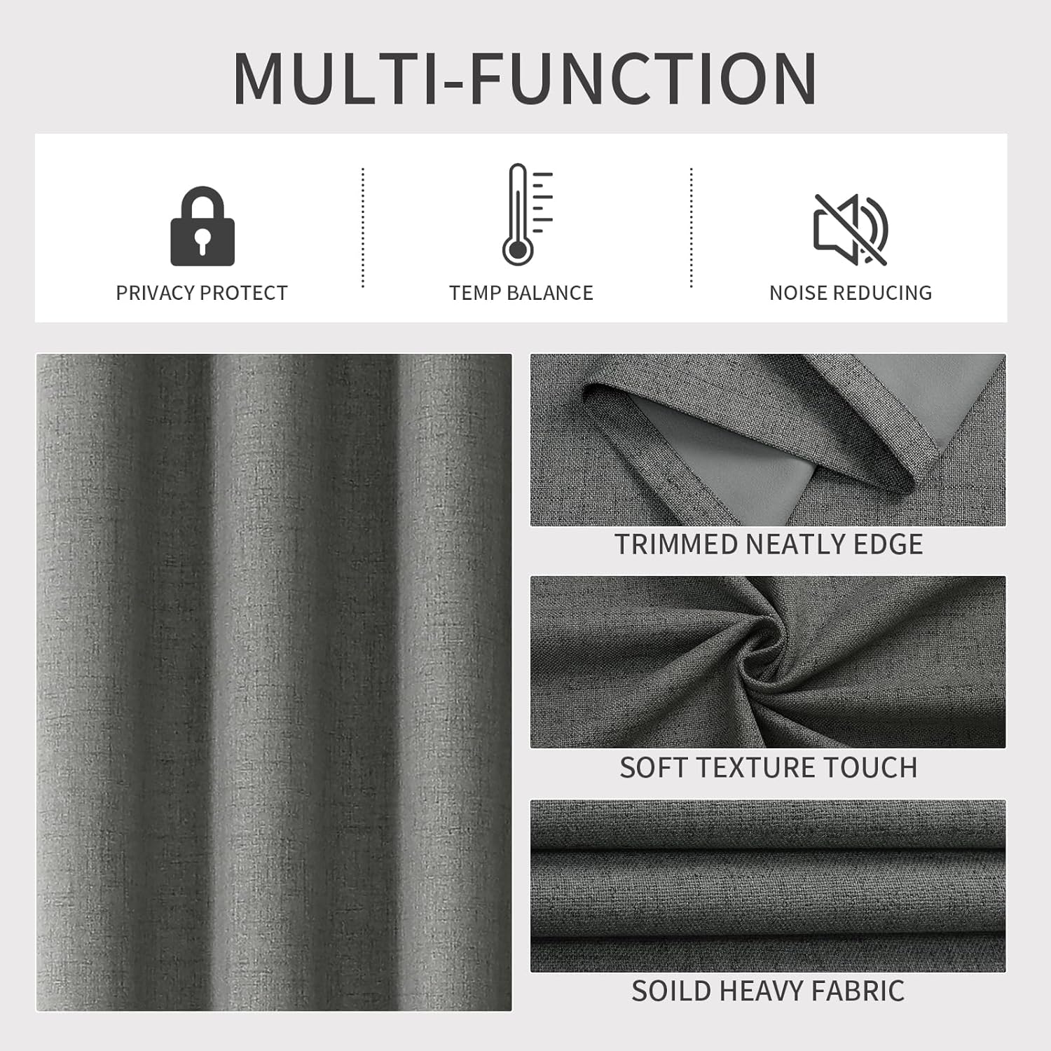 Joydeco Blackout Curtains 72 Inches Long 2 Panels Burg, Room Darkening Curtains for Bedroom, 100% Black Out Textured Thermal Drapes Privacy Protection 2 Panels Set(W42 x L72 Inch, Grey)