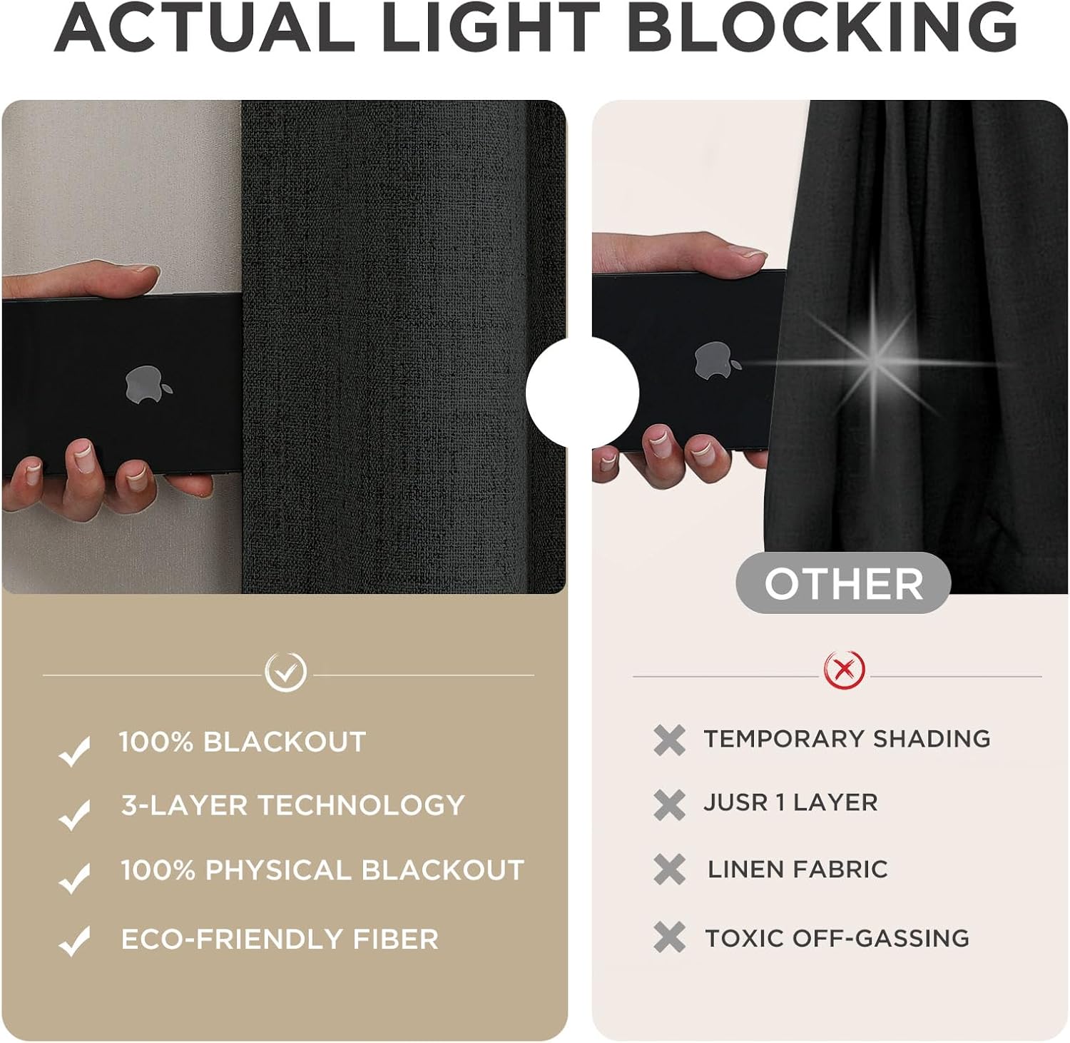 - 100% Total Blackout & UV Blocking: Achieve perfect darkness with these blackout curtains! The dedicated liner blocks 100% sunlight and UV rays, ideal for any bedroom or living room. This blackout curtain protects furniture from fading and helps regulate room temperature year-round.