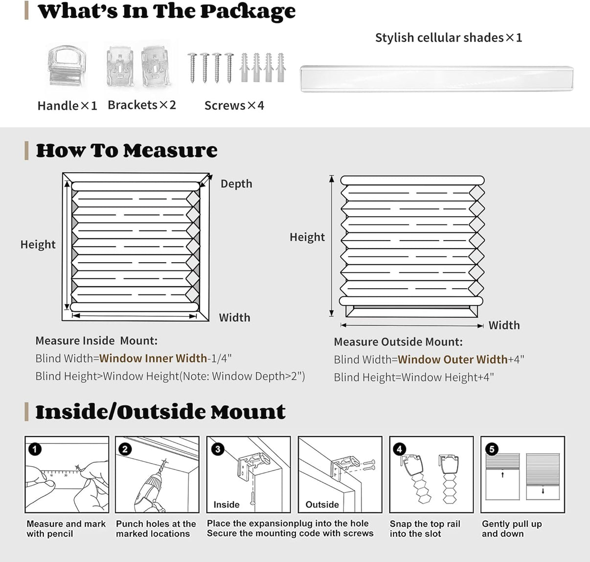 • 【Durable and Low Maintenance】 – This cellular roller shade is made of high-quality, durable materials that can withstand daily wear and tear. The easy-to-clean fabric requires minimal maintenance, ensuring your curtains remain in optimal condition for a long time.