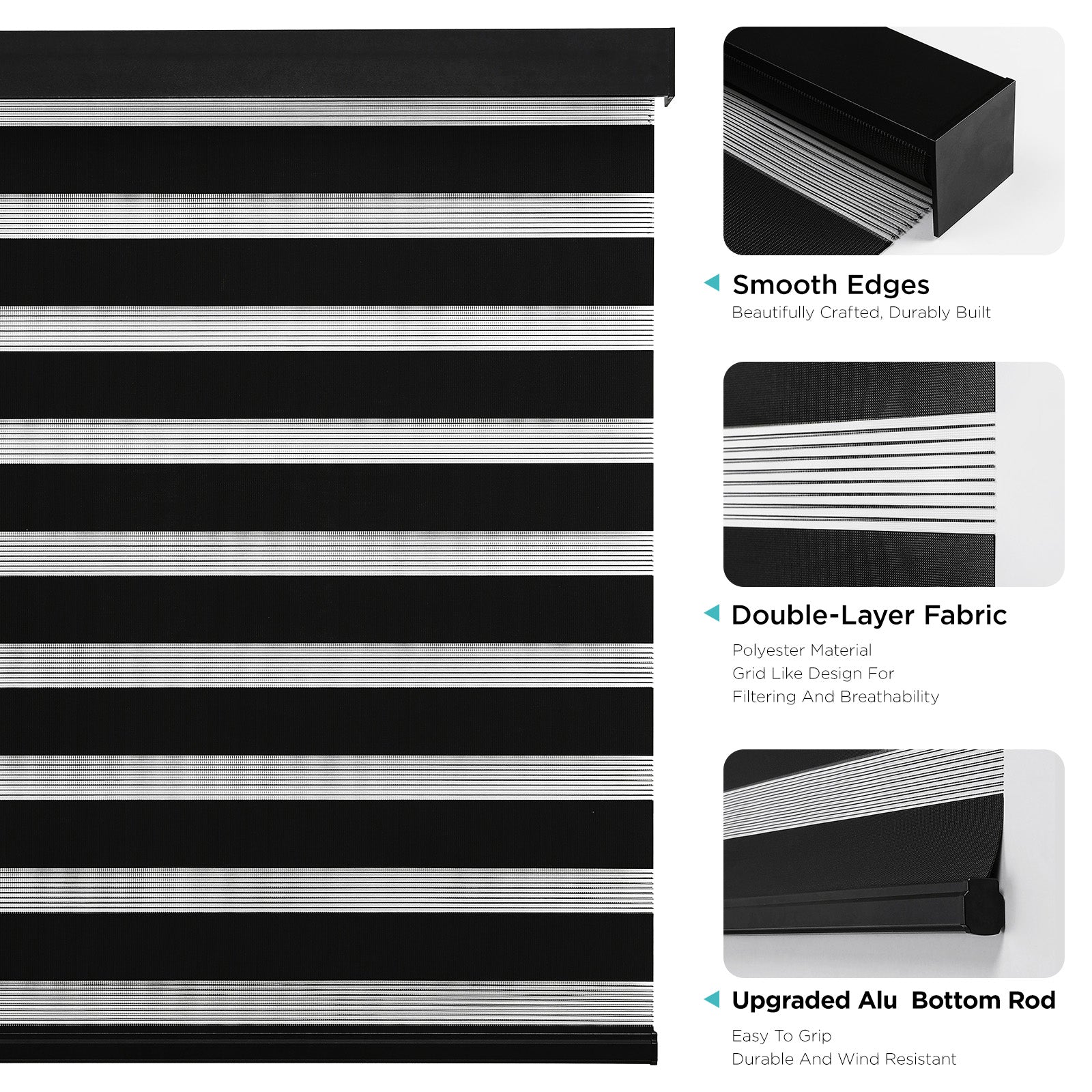 - 【Smart & Safe Design】Cordless mechanism stops at any height. Child and pet safe certification. Protective bumper strip prevents window frame damage. UV protection keeps your furniture looking new.