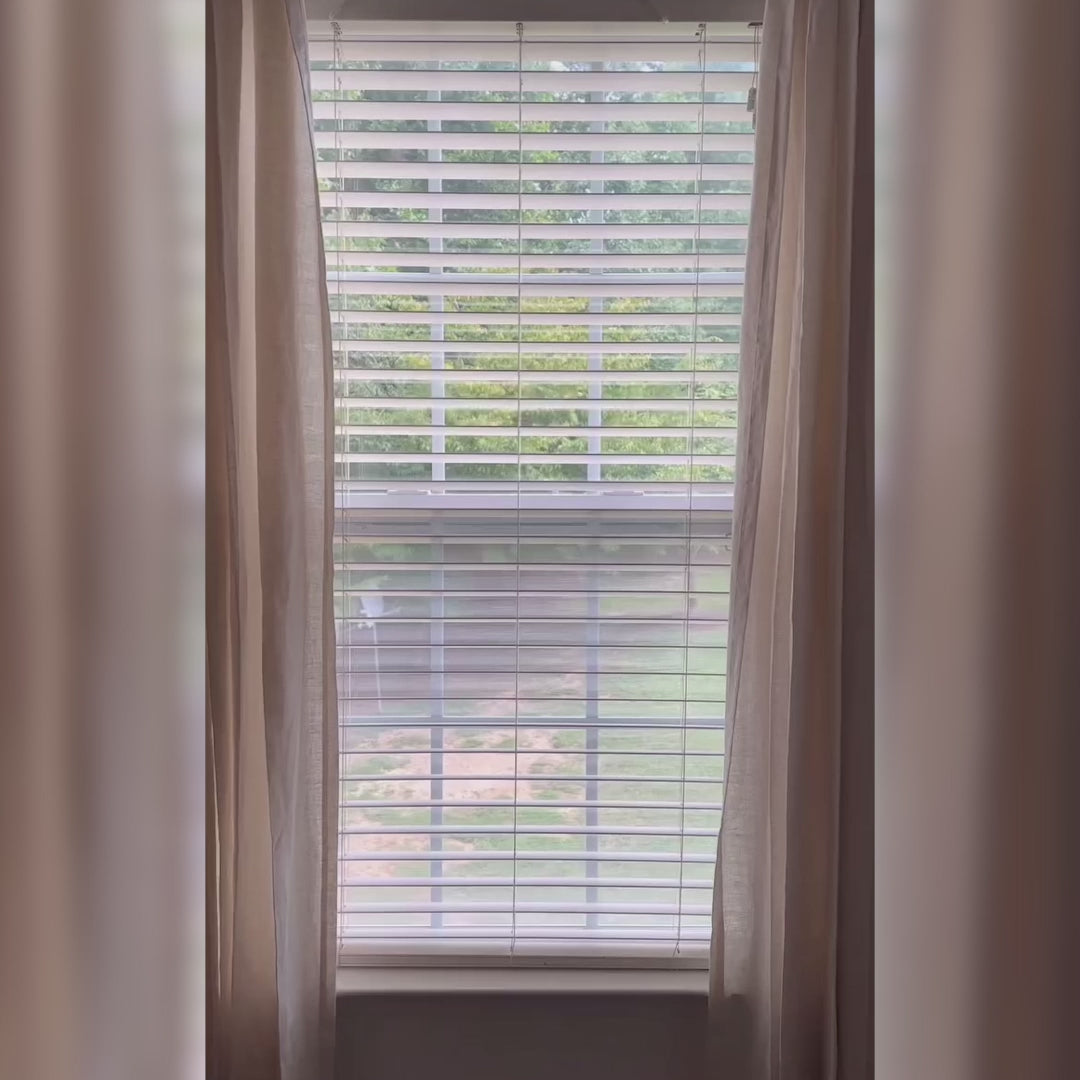 - Considere agregar 7,5 cm adicionales al ancho y alto para un control óptimo de la luz y mayor privacidad. Extender las persianas por fuera de la ventana también proporcionará el espacio necesario para los soportes y hará que la ventana parezca más grande de lo que es.