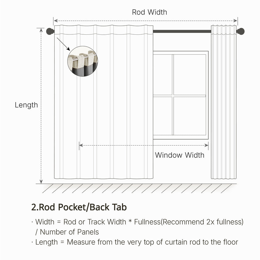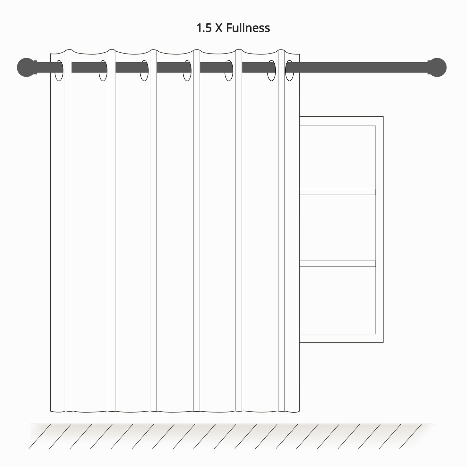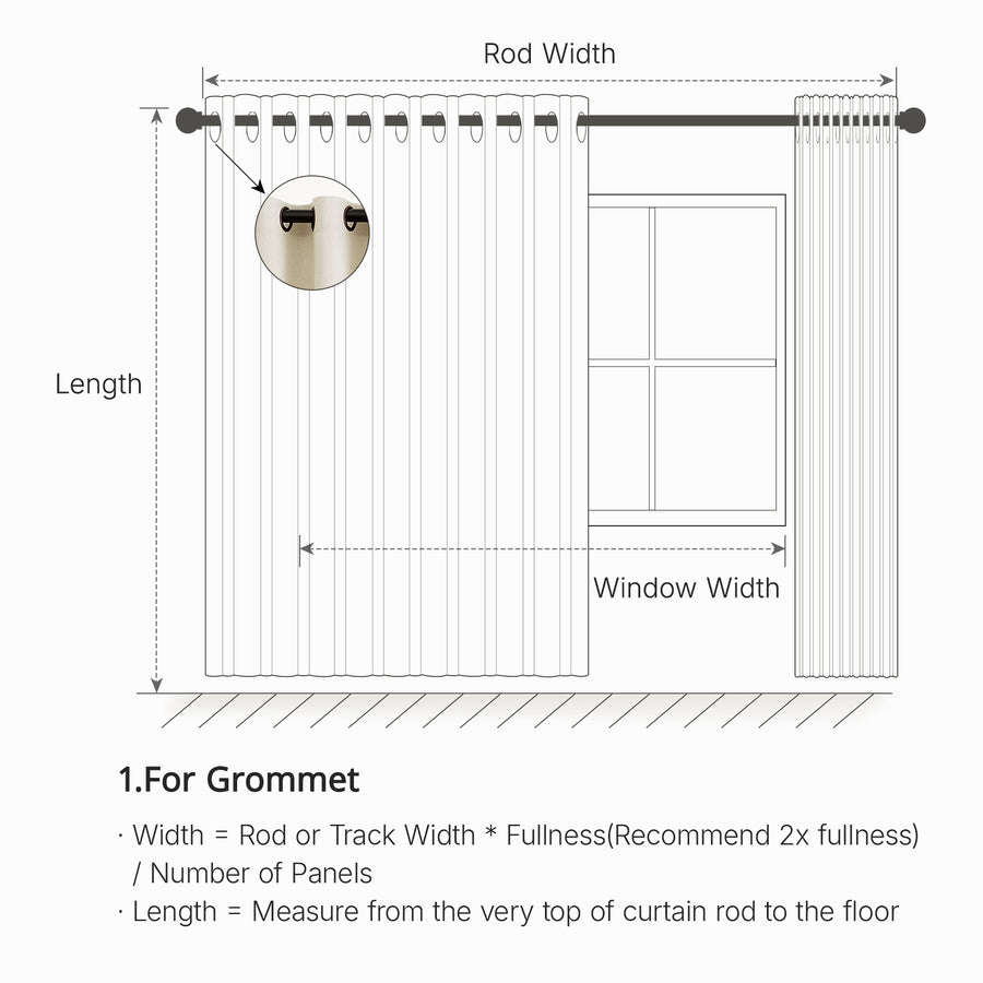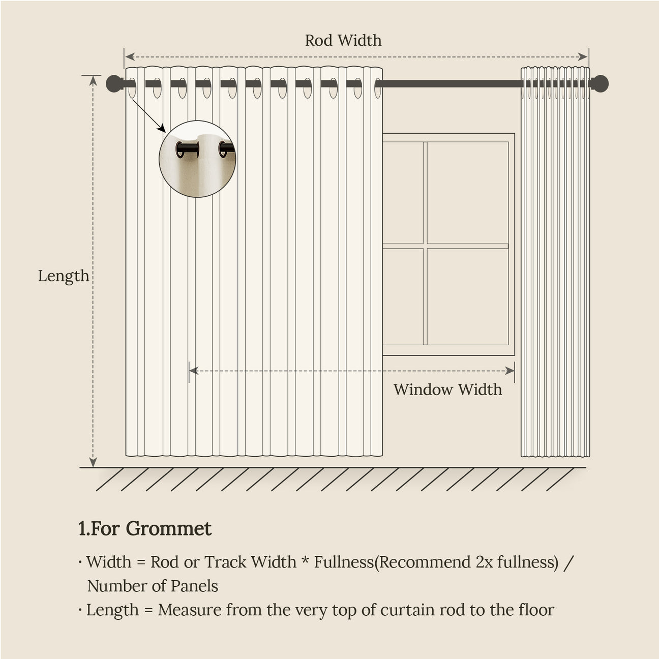 We usually recommend a fullness of 150%~200% for the best effect. For example, if rod or track length is 100 inches, you may order 2 panels each 100 inches width for 200% fullness.