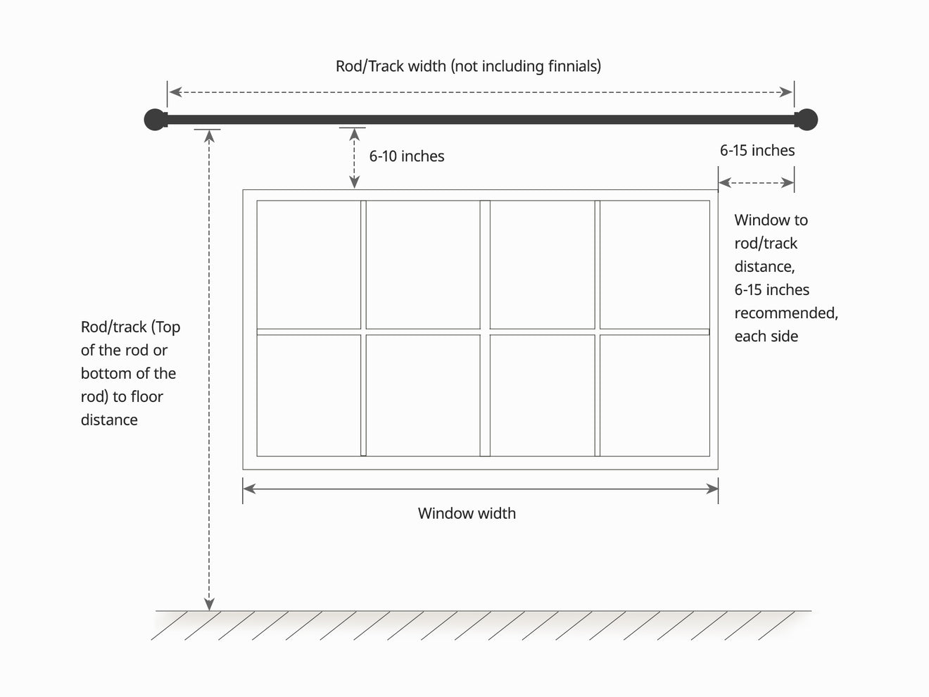 For accuracy, measure your curtain track or pole's width, not the window. For a new installation, extend it 6-15 inches beyond each side and 6-10 inches above the window. If using a pole, measure between the finials.