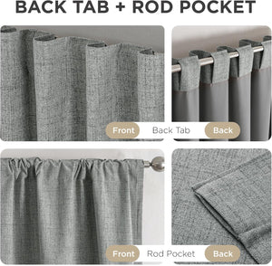 - Dual Hanging Options Rod Pocket & Back Tabs: Enjoy versatile styling for your curtains. This set offers both a classic rod pocket and modern back tabs for a tailored look. Easily install this curtain panel pair on any standard rod, making them perfect curtains for bedroom or living room curtains.