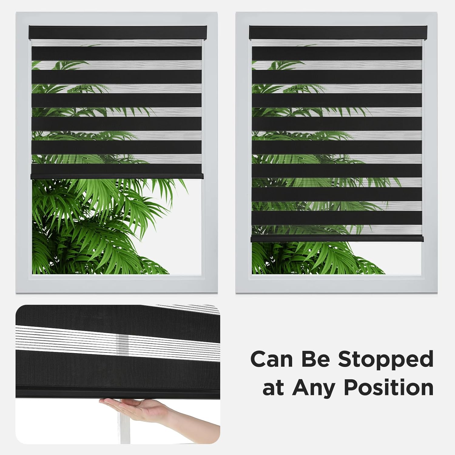 - 【Child & Pet Safe】Certified cordless design stops at any position. Easy-grip bottom rail allows smooth operation without touching the fabric. Safe for homes with children and pets.
