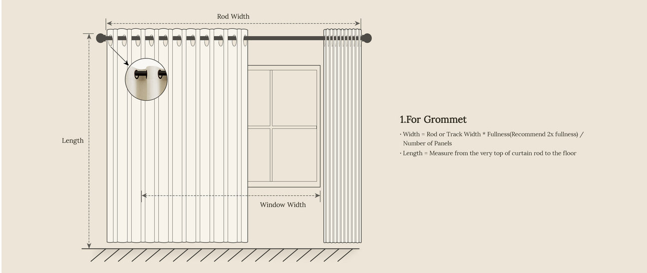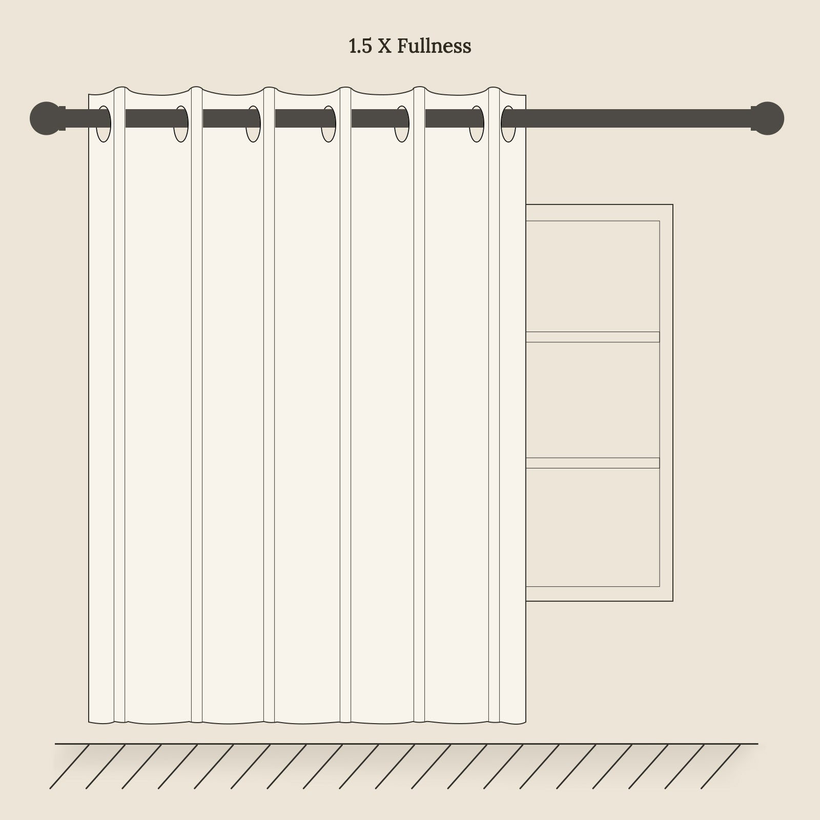 We usually recommend a fullness of 150%~200% for the best effect. For example, if rod or track length is 100 inches, you may order 2 panels each 100 inches width for 200% fullness.