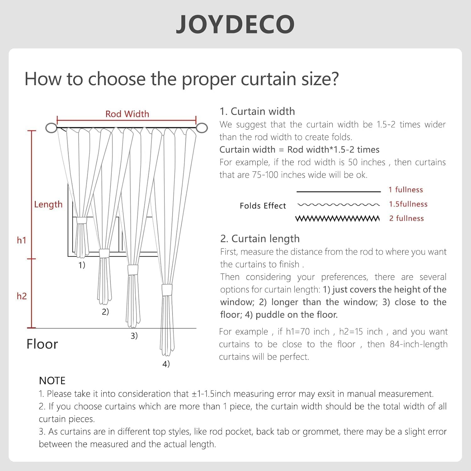 • 100% Blackout: Joydeco blackout curtains are double layered with grey liner on the back. The innovative double woven textured fabric can block out entirely 100% sunlight and harmful UV ray (deep colors work better), keeping room cooler against heat in summer and retaining the room warm in winter.