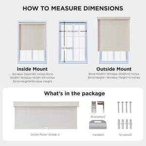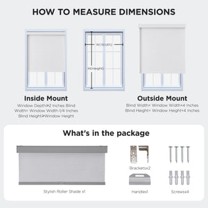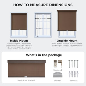 - [Easy Installation]: Our roller shades come with all necessary hardware and detailed instructions for a hassle-free installation process. Whether you're mounting them inside or outside the window frame, the process is straightforward, allowing you to have your new shades up in no time. If any accessories are missing or broken, please message us, and we will resend them ASAP.