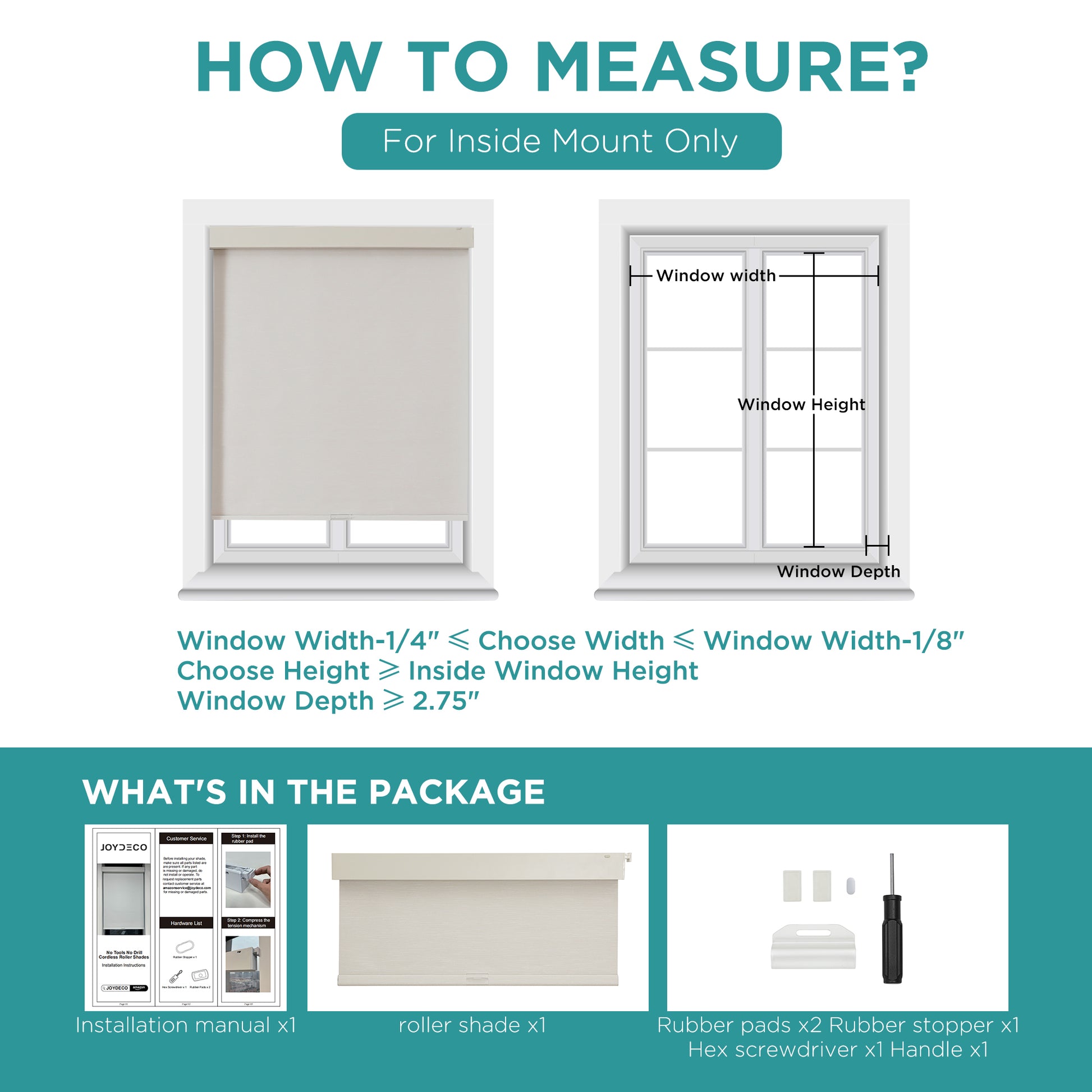 - [Easy Installation]: Our roller shades come with all necessary hardware and detailed instructions for a hassle-free installation process. Whether you're mounting them inside or outside the window frame, the process is straightforward, allowing you to have your new shades up in no time. If any accessories are missing or broken, please message us, and we will resend them ASAP.