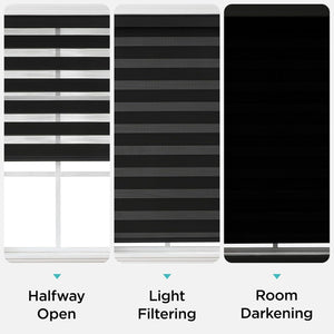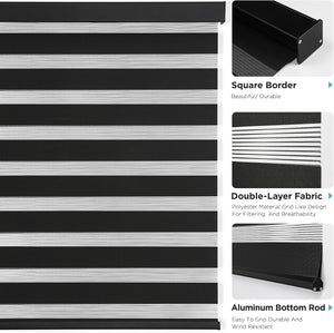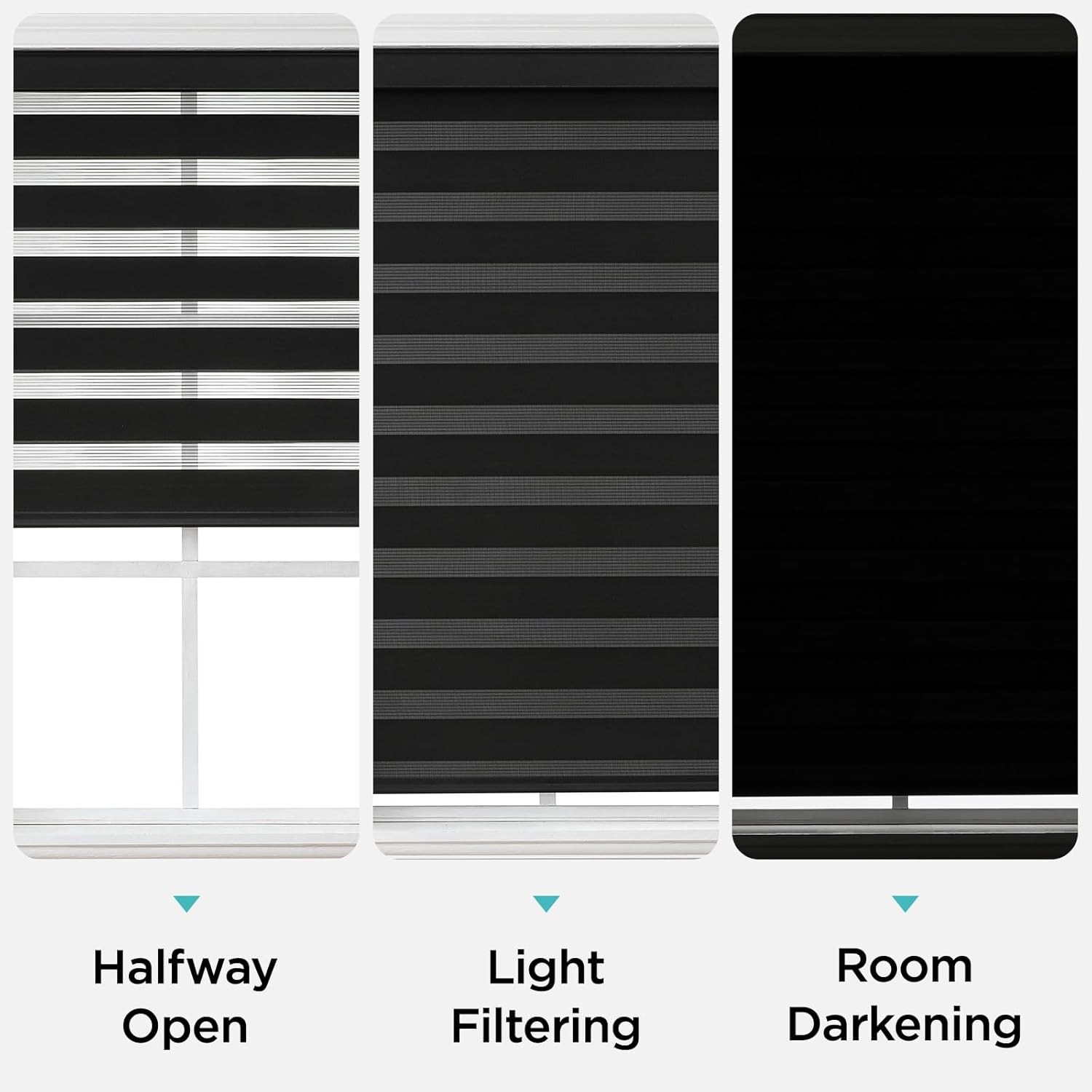 Joydeco Cordless Zebra Blinds for Windows, Dual Layer Light Control Window Blinds with Light-Proof Aluminum Cover, Free-Stop Roller Shades for Home & Office (Black,46" W x 75" H)