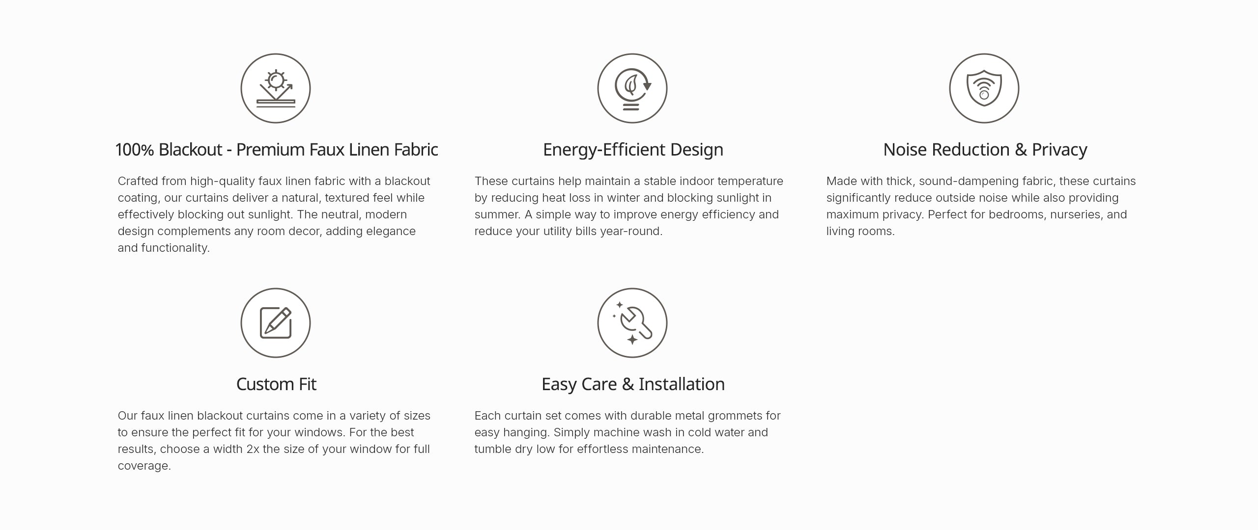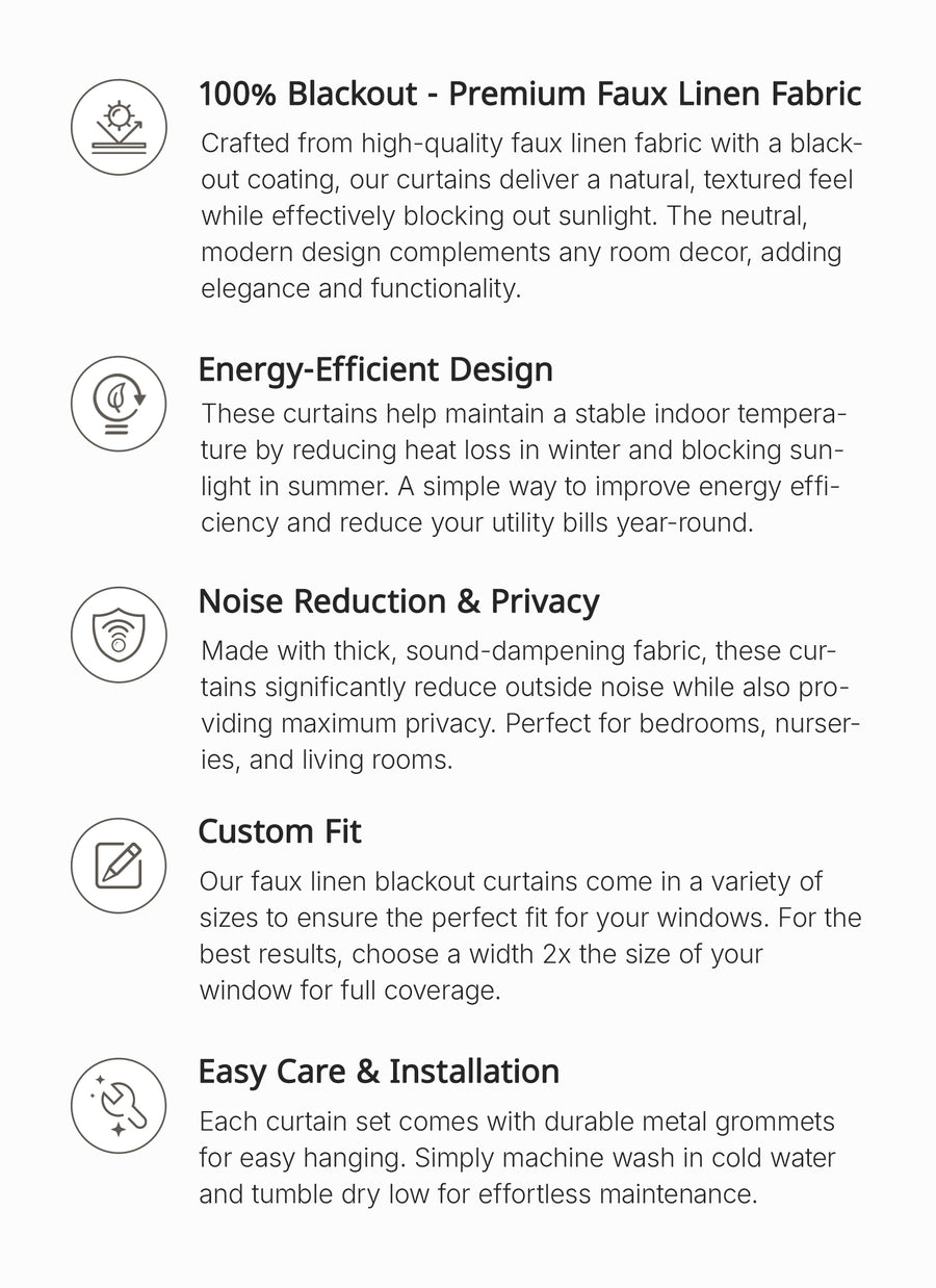 【Custom Fit】: Our faux linen blackout curtains come in a variety of sizes to ensure the perfect fit for your windows. For the best results, choose a width 2x the size of your window for full coverage.