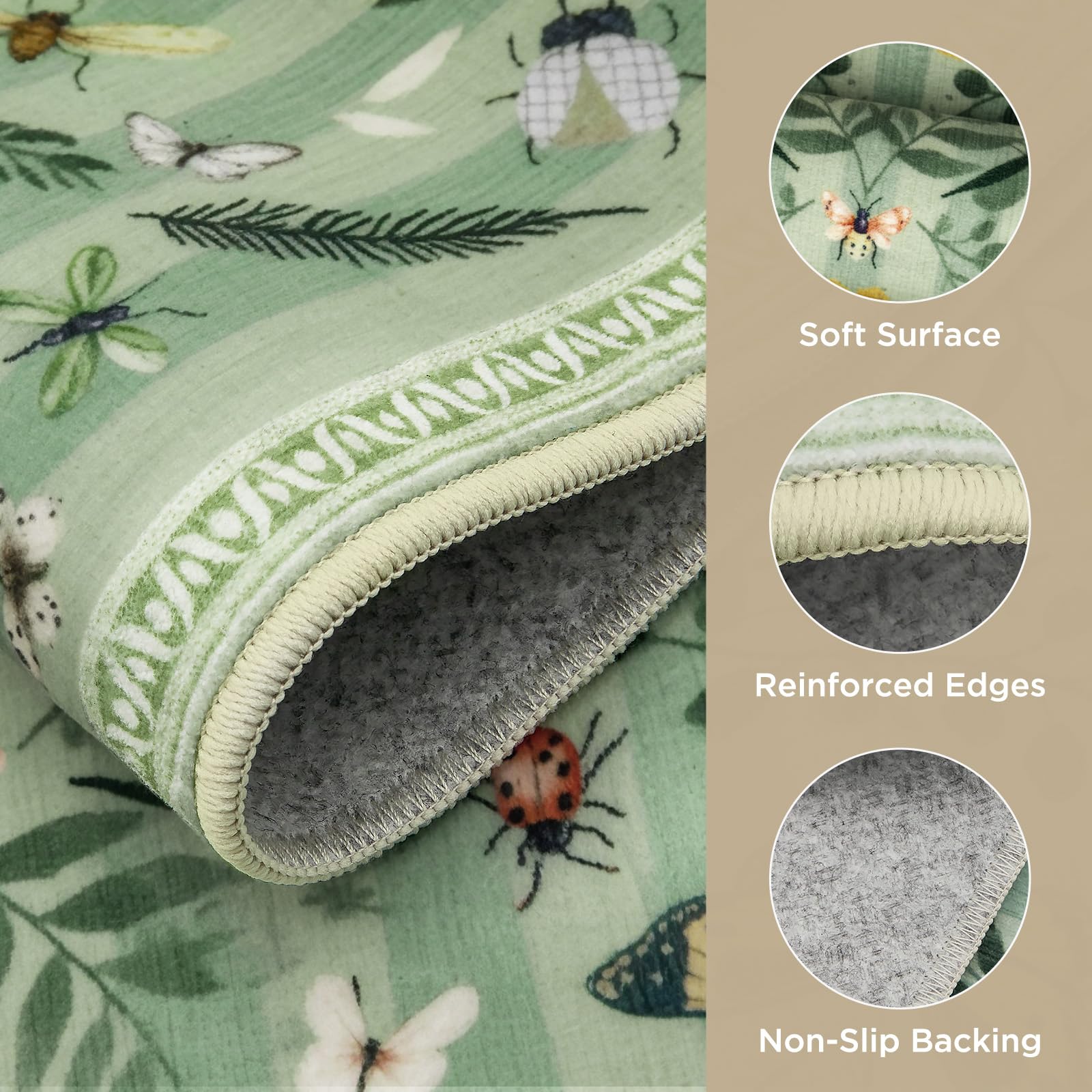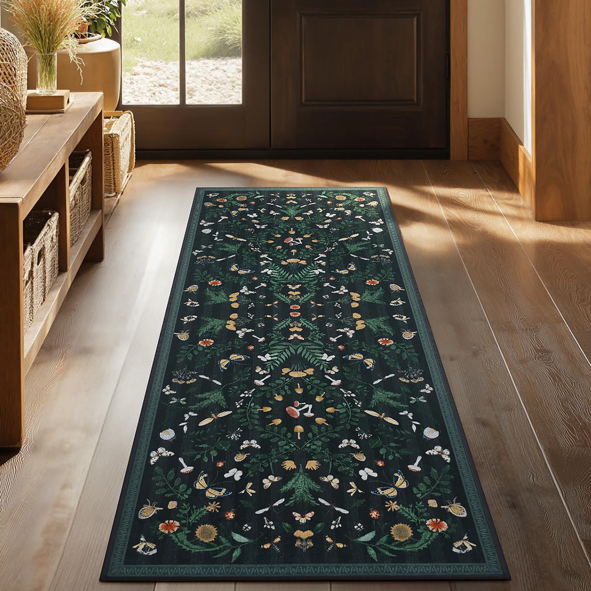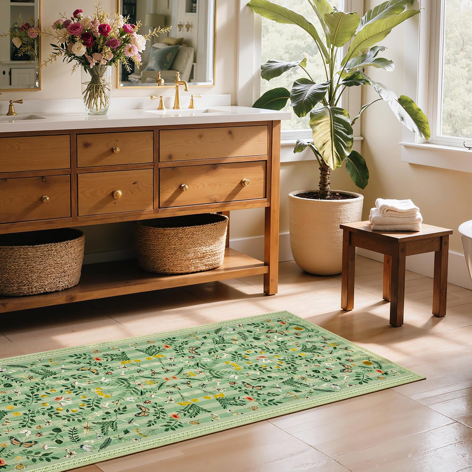 Joydeco Insect Washable Bathroom Rug, Botanical Kitchen Runner Rug Non Slip, Boho Ultra-Thin Soft Indoor Floor Carpet Runners for Hallways Entryway Entrance Laundry