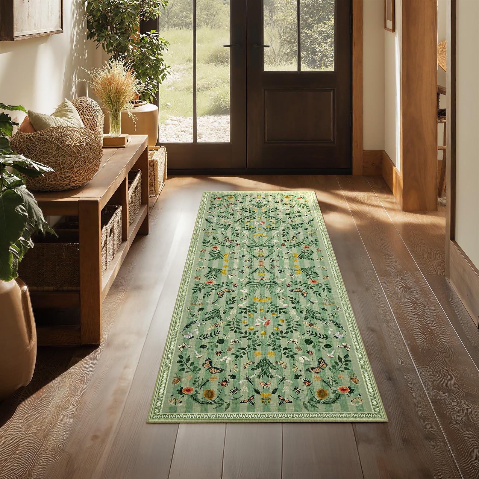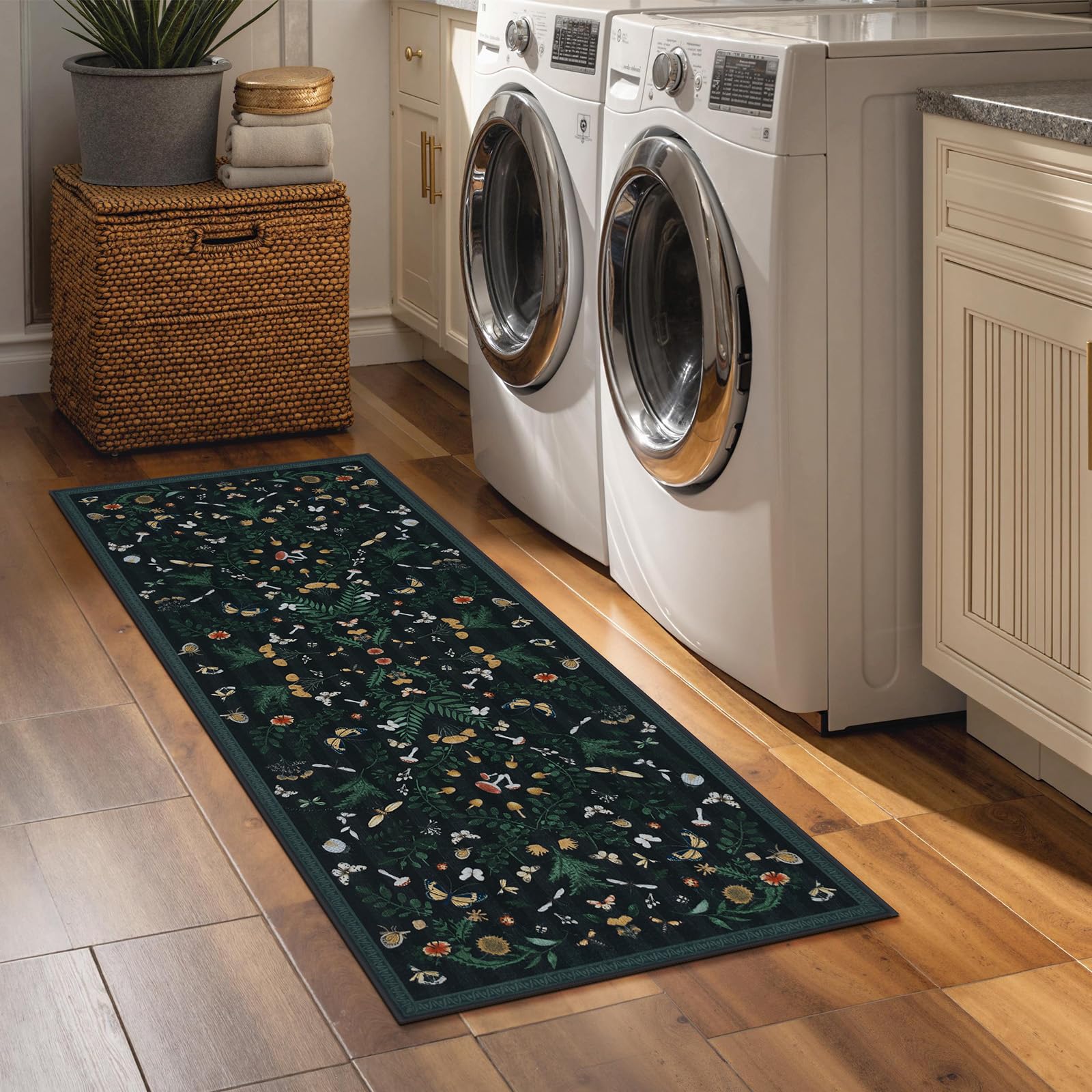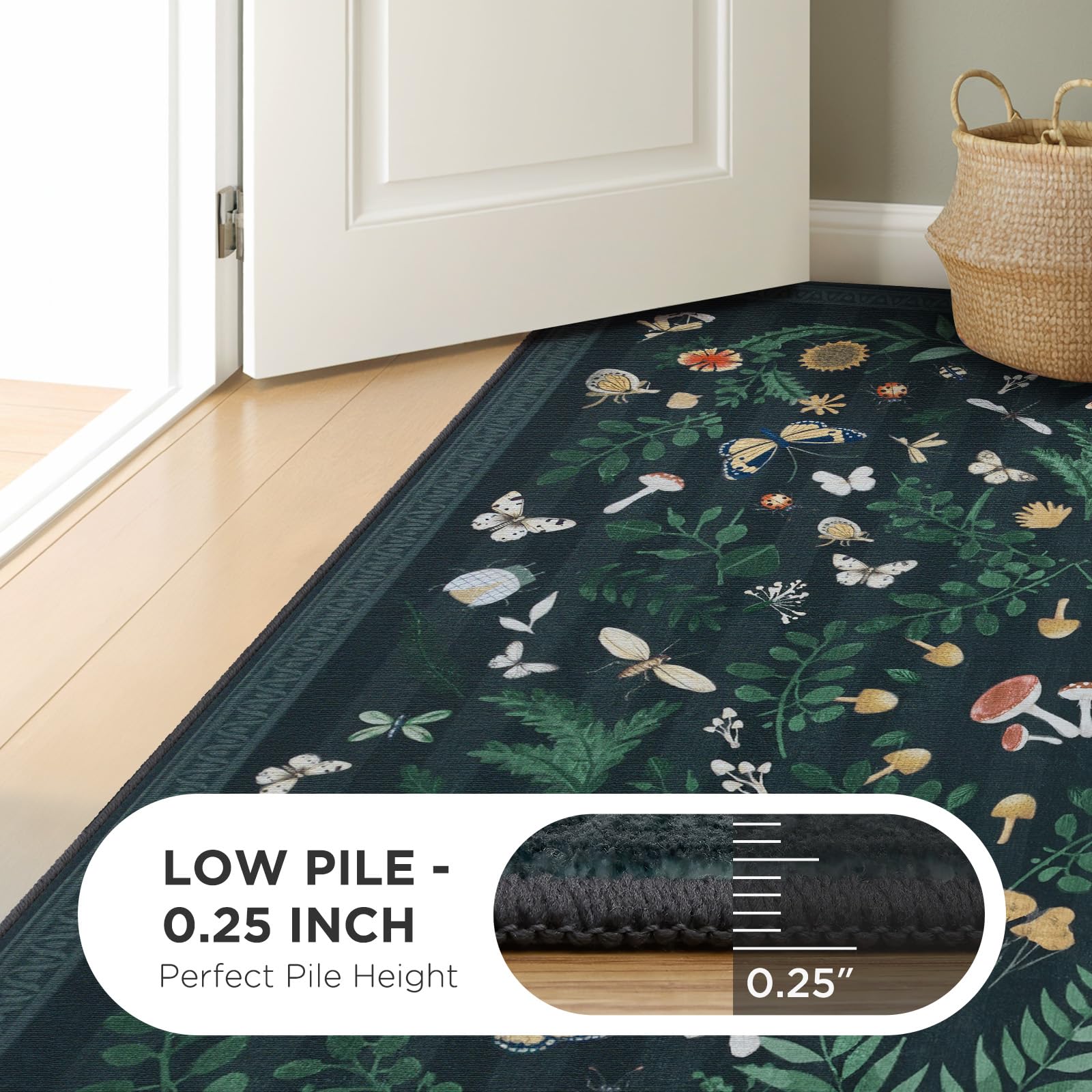 Joydeco Insect Washable Bathroom Rug, Botanical Kitchen Runner Rug Non Slip, Boho Ultra-Thin Soft Indoor Floor Carpet Runners for Hallways Entryway Entrance Laundry