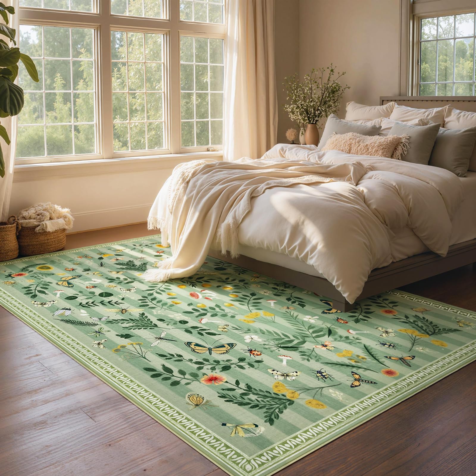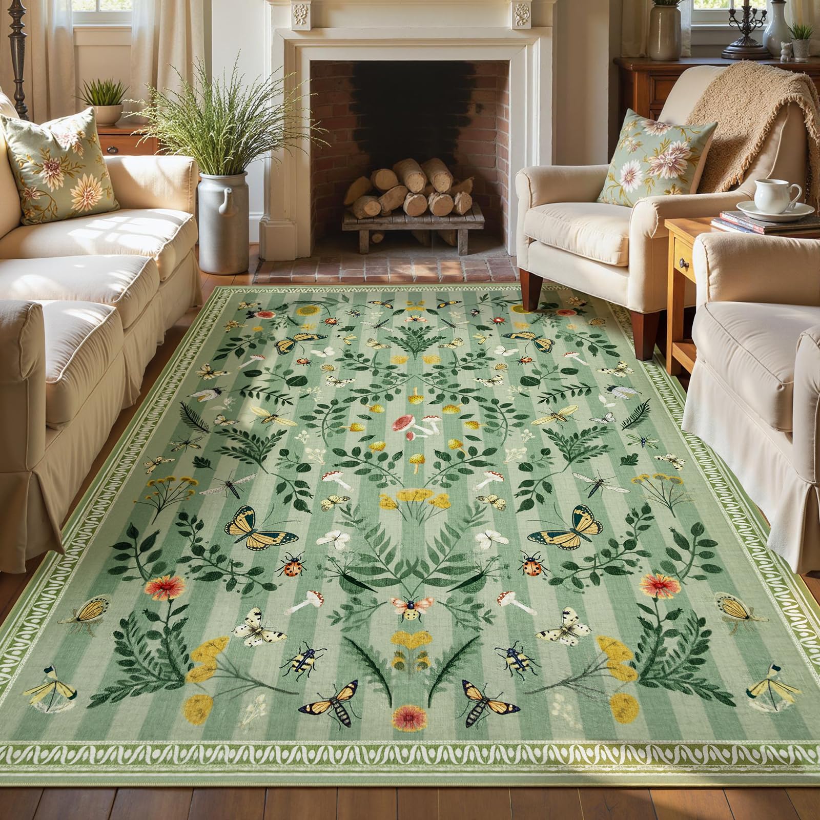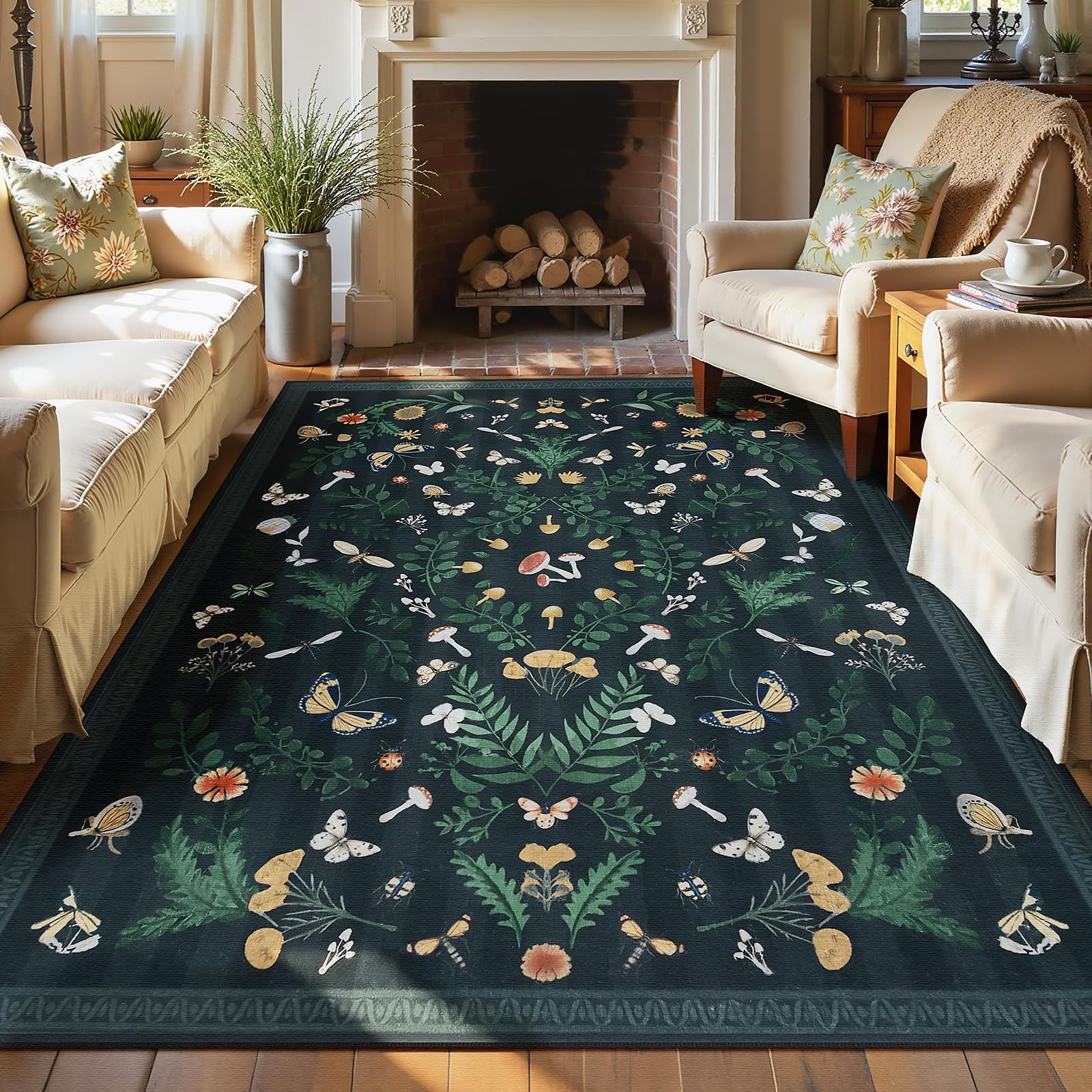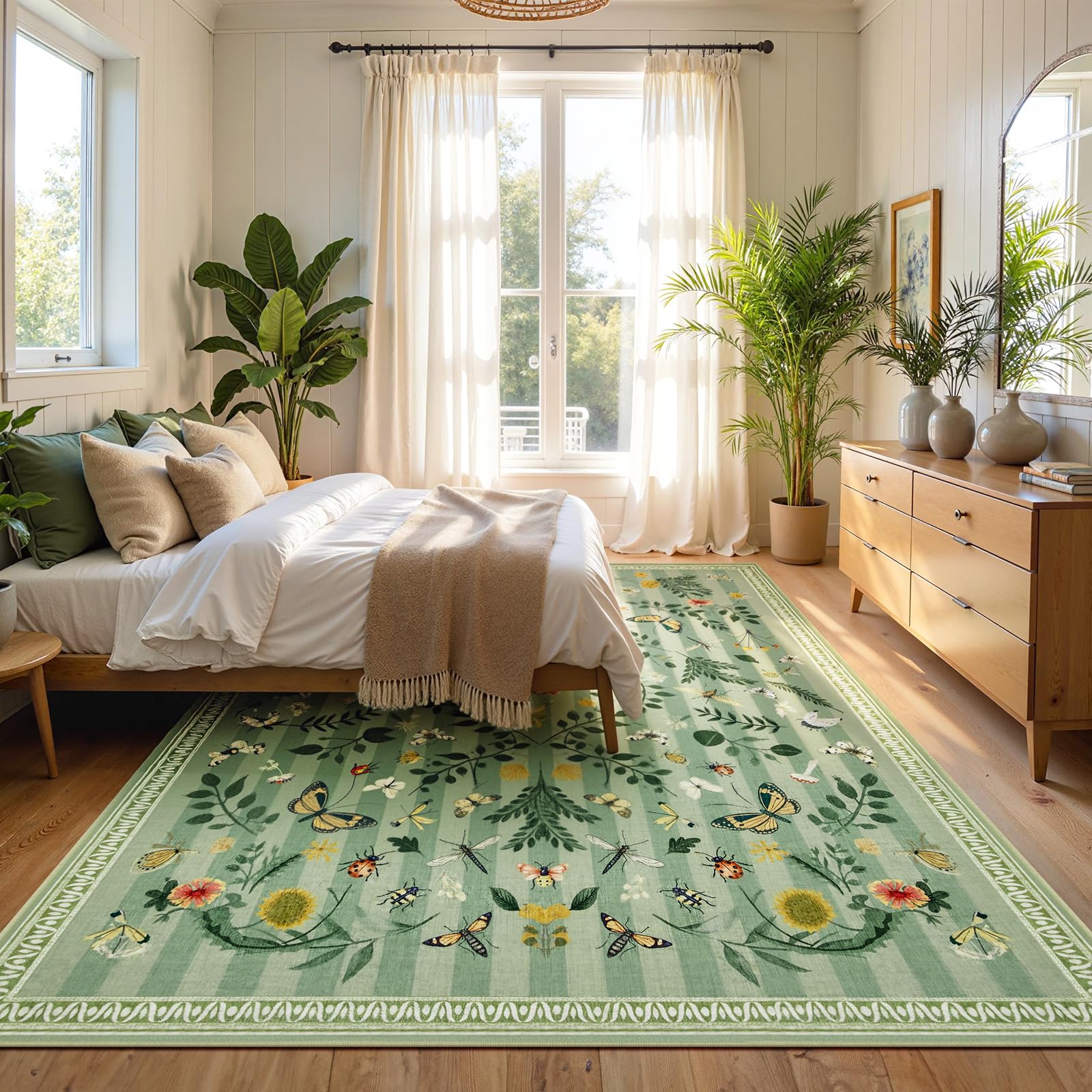 - Bohemian Insect Design: Infuse personality into any room with this boho rug featuring delicate insect motifs and vibrant floral patterns. Its nature-inspired charm creates a soothing, inviting atmosphere perfect for living room or bedroom.