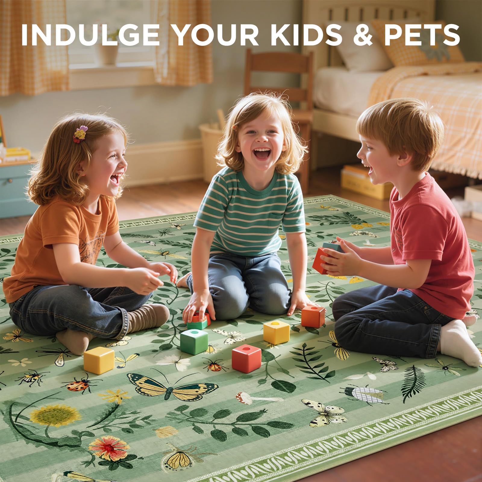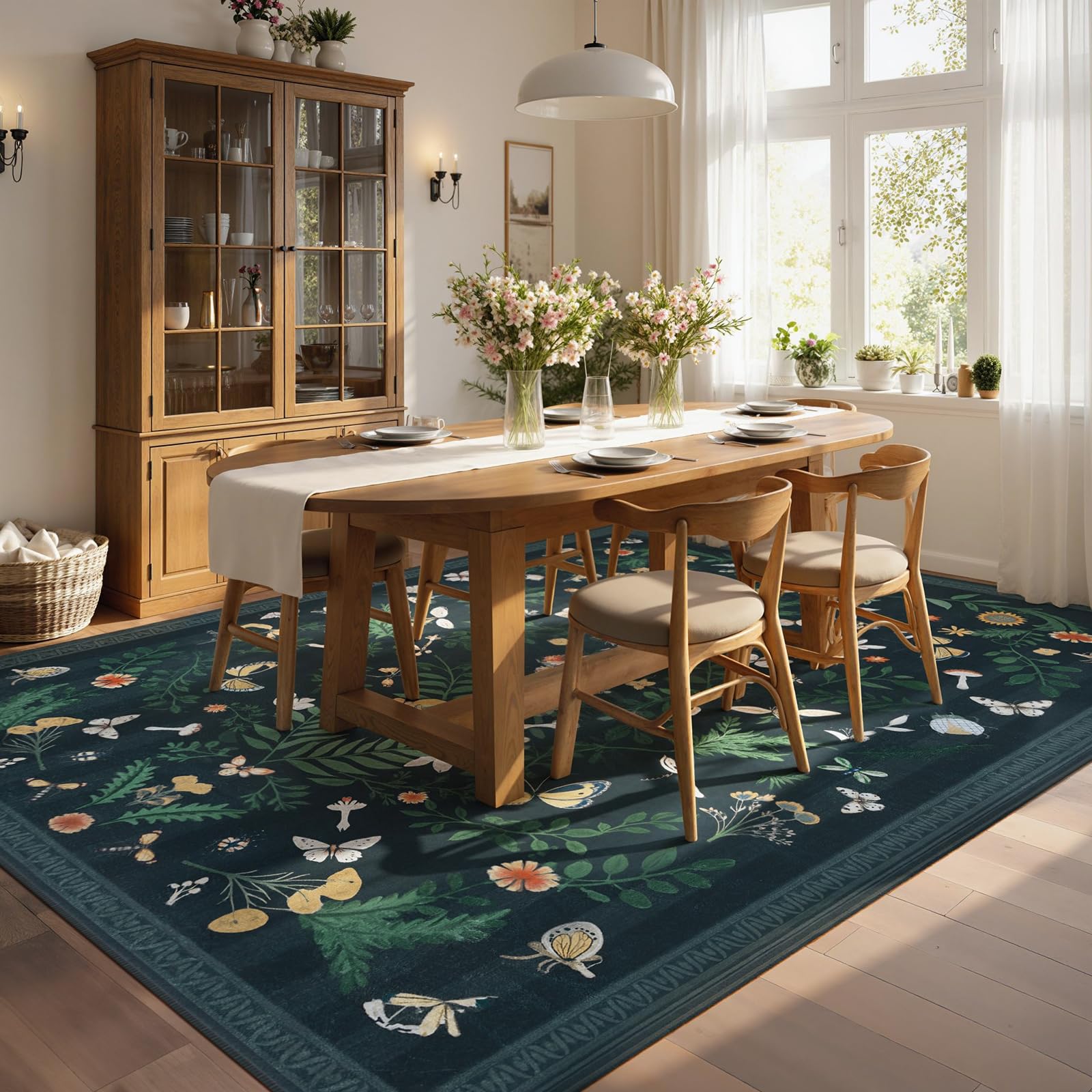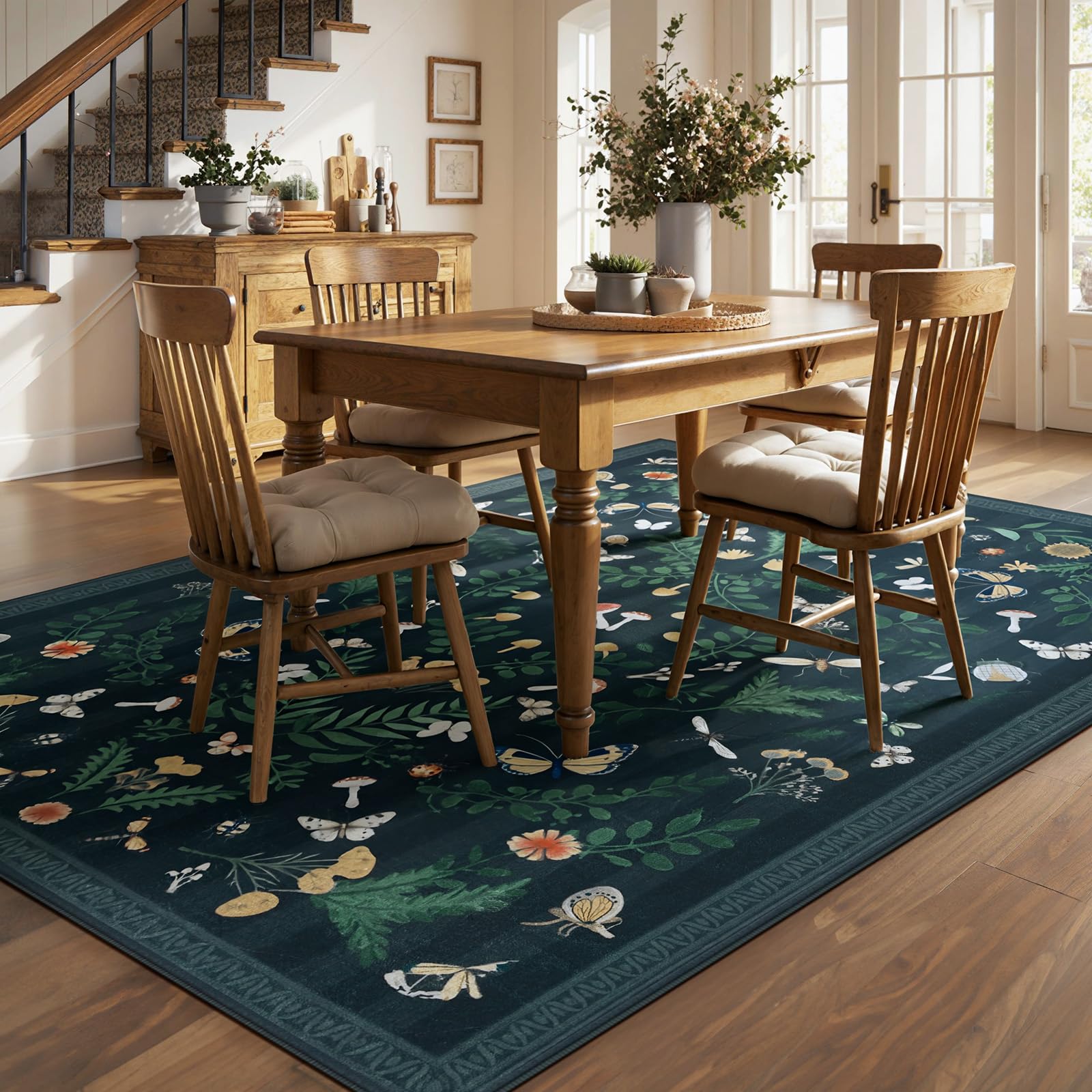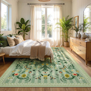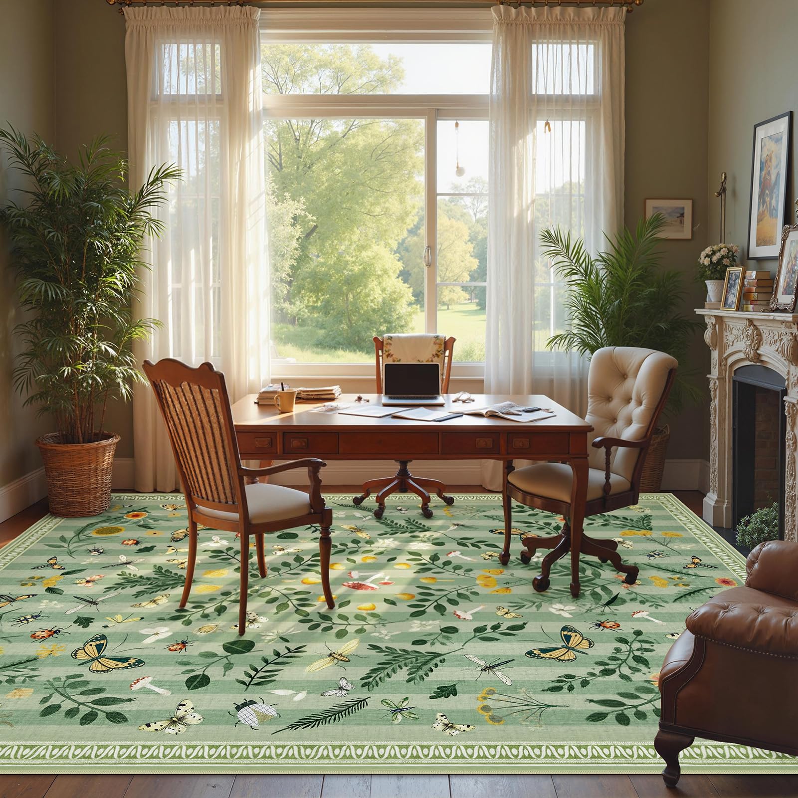 - Bohemian Insect Design: Infuse personality into any room with this boho rug featuring delicate insect motifs and vibrant floral patterns. Its nature-inspired charm creates a soothing, inviting atmosphere perfect for living room or bedroom.